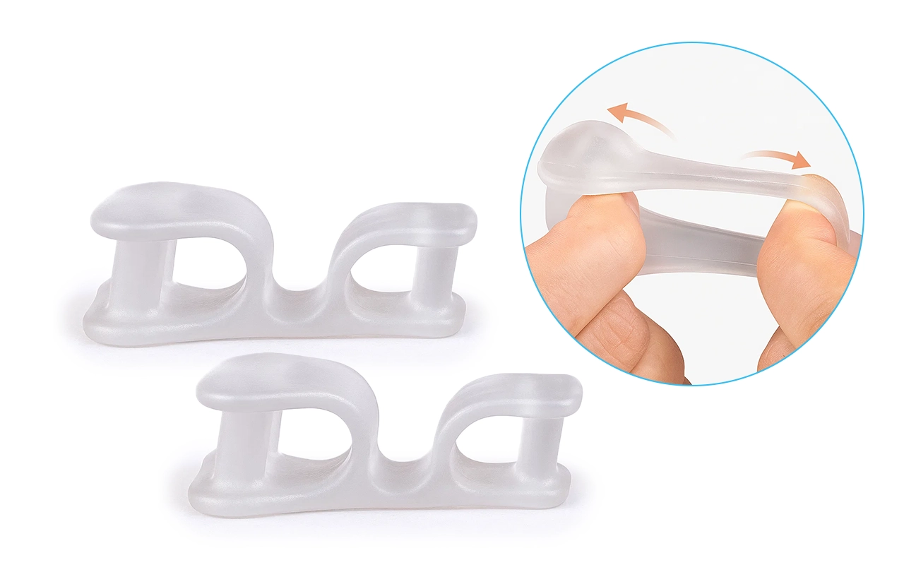 Le silicone doux ne pince jamais, même si je bouge beaucoup. Utiliser l’écarteur tous les jours a diminué la douleur de mes articulations et il est plus facile de rester debout.