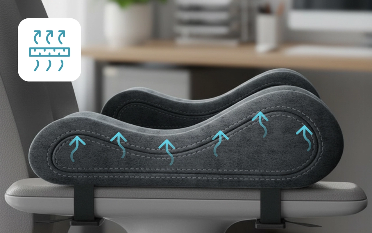 Le noyau en mousse à mémoire de forme apaise les bras fatigués en répartissant le poids de façon homogène. Chaque coussinet réduit la pression sur les articulations, vous aidant à vous sentir détendu lors de longues sessions.