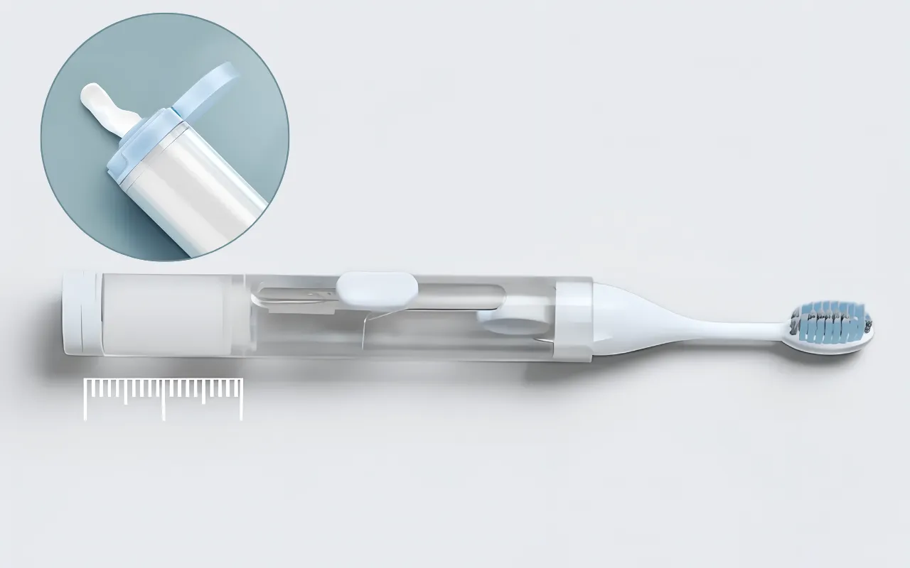 Glissez-le dans n'importe quelle poche ou sac à main sans encombrement supplémentaire. Voyagez léger et ne vous inquiétez plus jamais de manquer de soins bucco-dentaires.