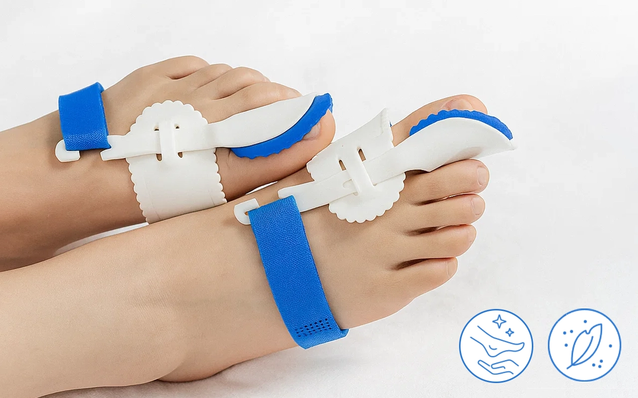 J’utilise ces correcteurs la nuit, et mes pieds paraissent plus droits le matin. Pas d’irritation et facile à nettoyer.