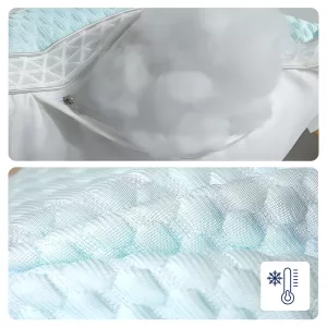 Nous avons acheté ces oreillers pour notre fils adolescent qui a trop chaud la nuit. Il dit que l’oreiller est froid au début puis reste agréablement frais jusqu’au matin.