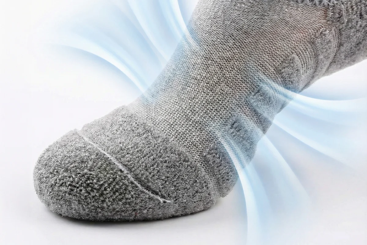 Les pieds restent secs grâce à un matériau aéré et au contrôle de l'humidité. La fraîcheur dure du matin au soir sans aucune odeur.