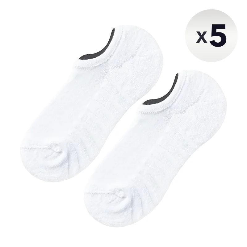 Les pieds restent secs grâce à un matériau aéré et au contrôle de l'humidité. La fraîcheur dure du matin au soir sans aucune odeur.