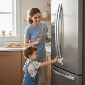 Notre nièce curieuse vient chaque week‑end et se dirige directement vers le frigo. Ce petit verrou a arrêté cette habitude instantanément, et nous pouvons toujours l’ouvrir d’une seule main en cuisinant.