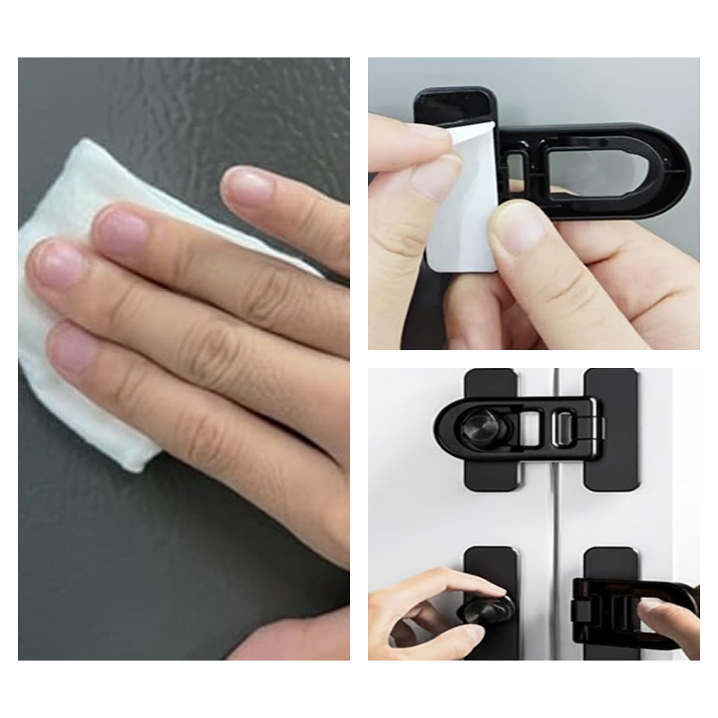 Nous sommes locataires, donc j’avais besoin de quelque chose qui n’abîme pas le frigo. Ce verrou colle très bien, se retire proprement, et empêche enfin mon enfant d’âge préscolaire d’accéder aux briques de jus.