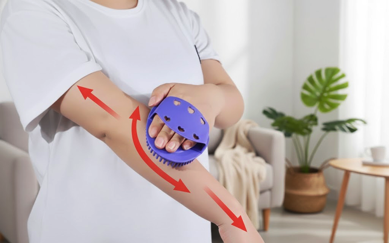 L’action de la brosse réveille la peau pour une meilleure circulation sanguine. Des séances régulières peuvent aider à tonifier le corps et réduire l’apparence des capitons.