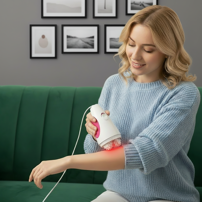J’adore ce gadget ! Je peux atteindre mes bras et mon ventre sans problème. La lumière rouge est aussi relaxante.