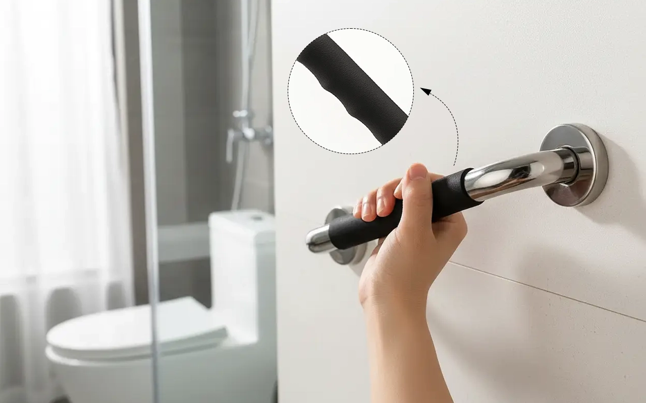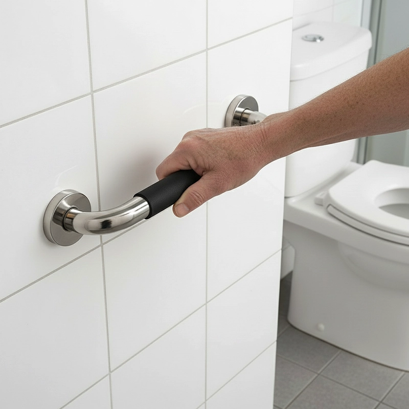 Mon père utilise cette barre d’appui près des toilettes tous les jours. La prise reste solide même quand tout est mouillé. C’est rassurant !