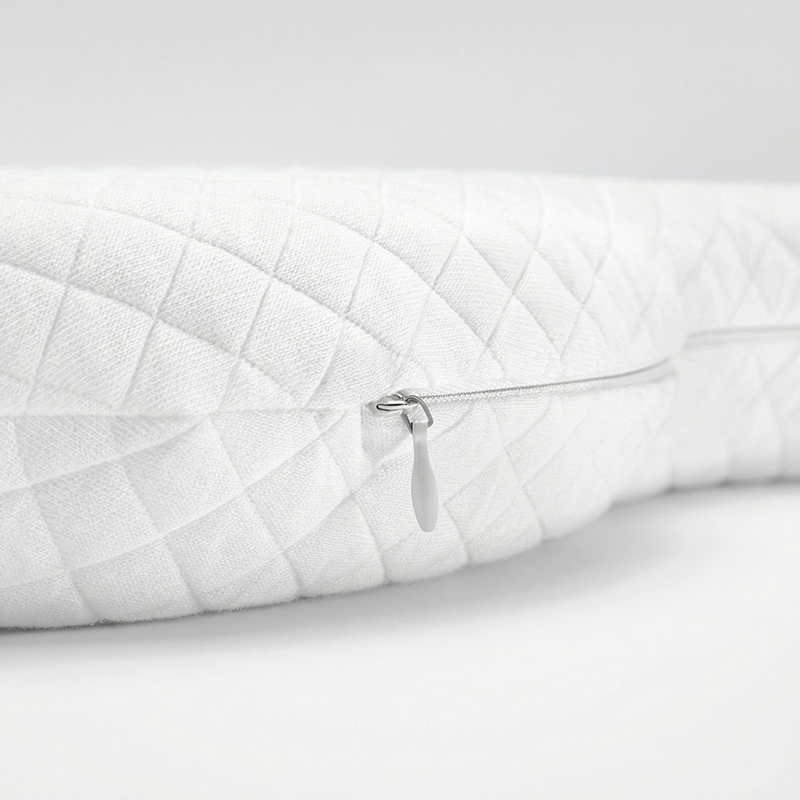 Doux au toucher mais soutient bien ma tête et mon cou. Facile à nettoyer et mon visage reste sans rides pendant mon sommeil.