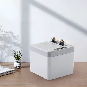Le capteur intelligent détecte les mouvements pour une distribution rapide et sans effort. Le couvercle à charnière à 130° protège les doigts et garde les cure-dents propres.