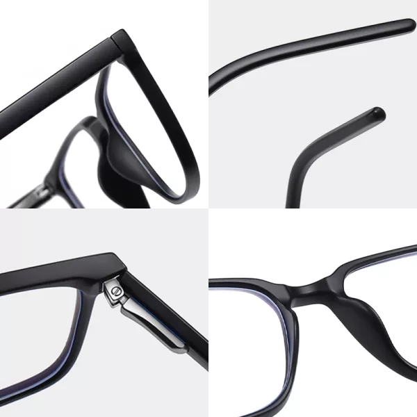 Les montures sont douces et ne pincent jamais ni n'alourdissent. Vous pouvez les porter toute la journée sans marques rouges ni glissement sur le nez.