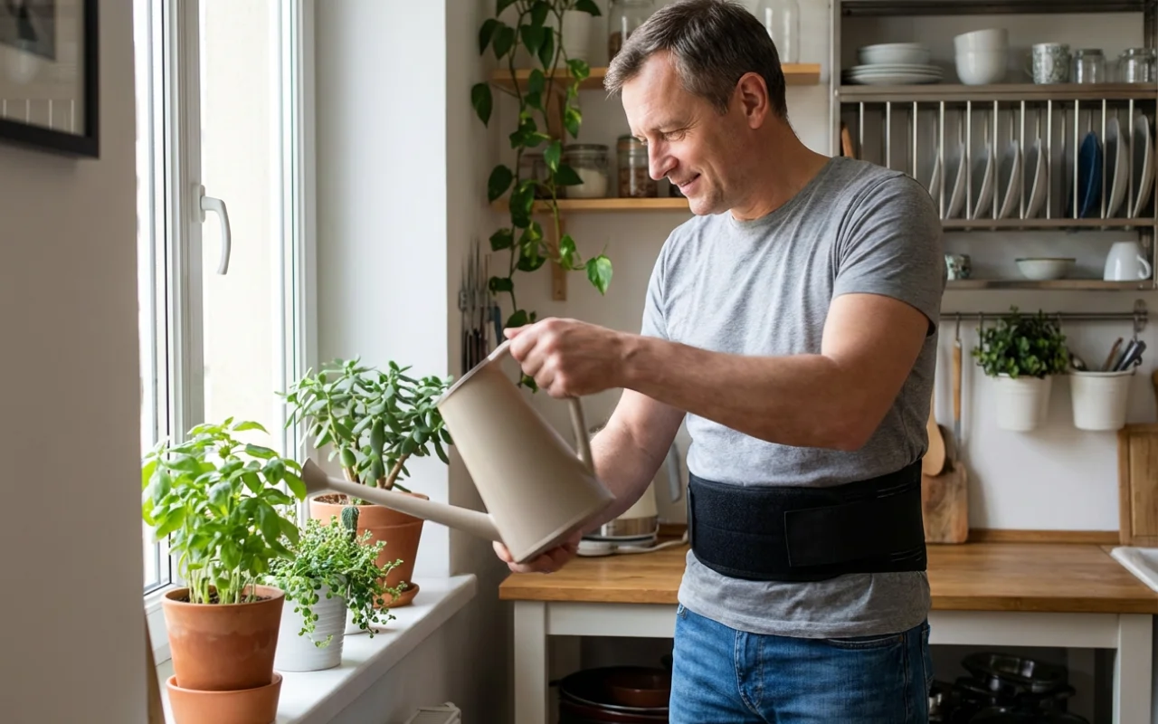 Je la porte pour jardiner et me pencher sur les plates-bandes. Avant, mon dos criait après coup, maintenant il se sent simplement doucement soutenu, même après quelques heures dehors.