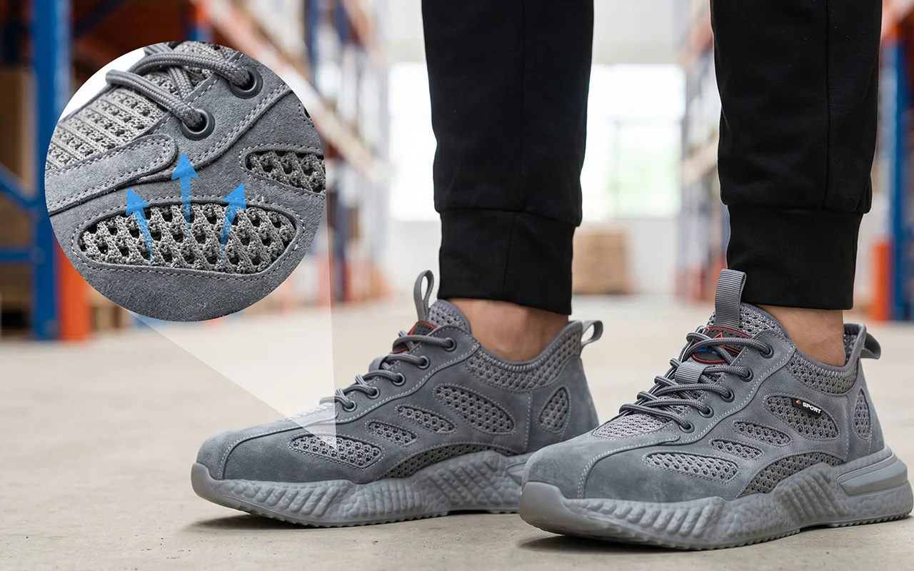 Je reste debout devant une machine toute la journée. Ces chaussures en mesh empêchent mes pieds de surchauffer, l’amorti est agréable, et la semelle antidérapante me stabilise sur les zones huileuses.
