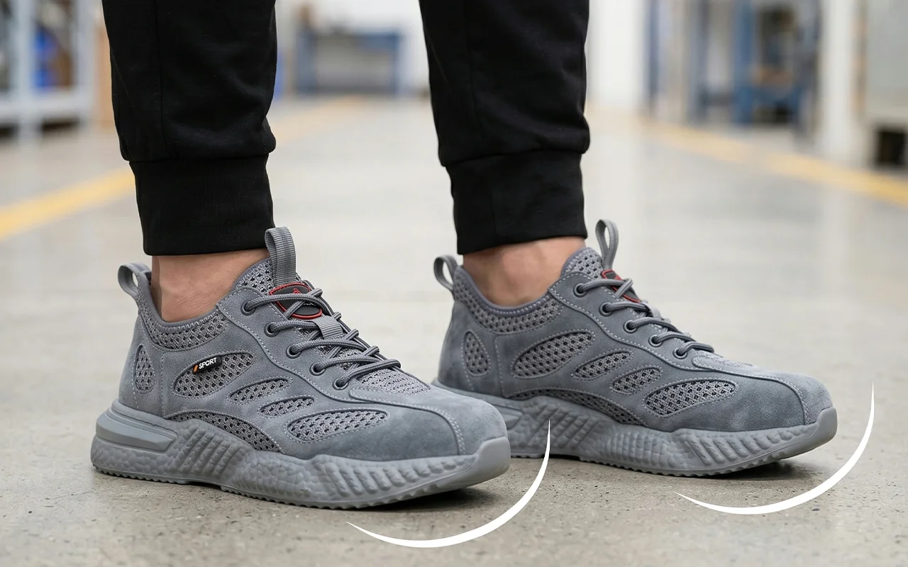 J’ai acheté ces baskets de travail pour mon emploi en entrepôt. Mes pieds restent au frais, mes orteils sont en sécurité près des palettes, et elles sont assez légères pour des journées de dix heures.