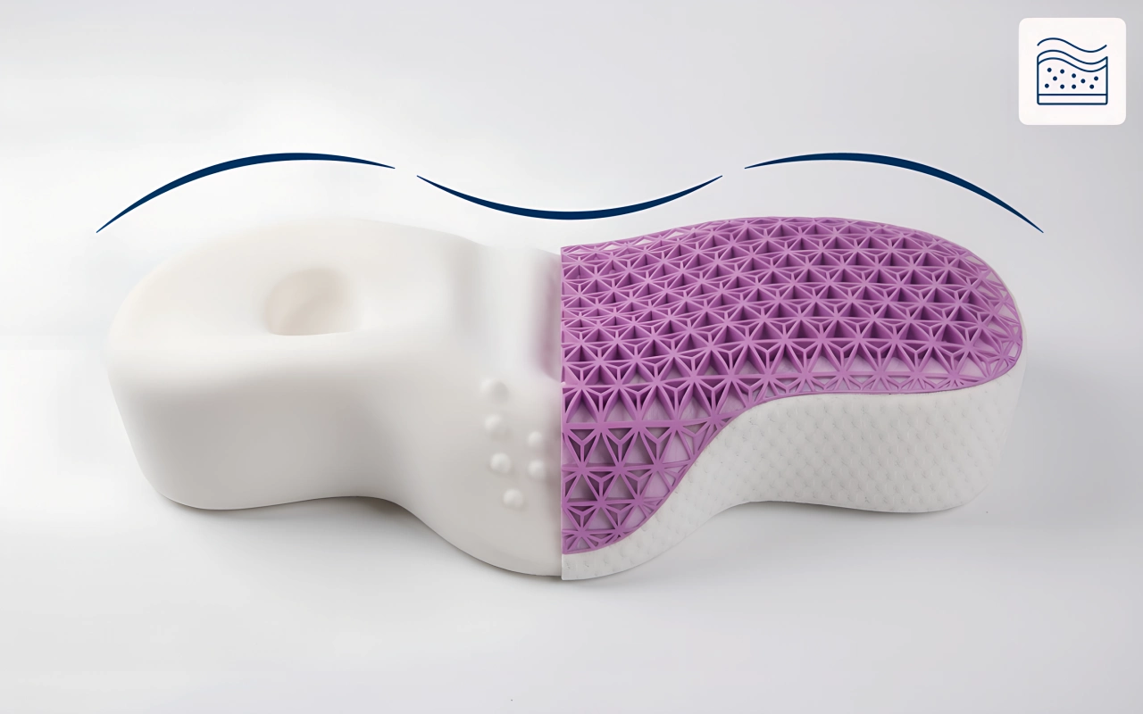 Ce design favorise un bon positionnement pour une nuit reposante. Il aide à réduire la douleur en soutenant les courbes naturelles.