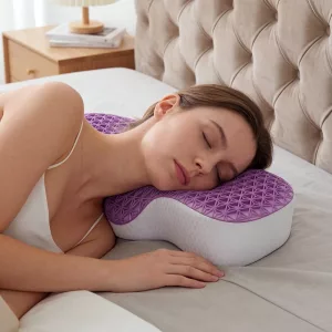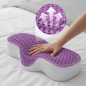 Cet oreiller cervical m’aide vraiment à mieux dormir. Ma tête est bien soutenue et je ne me réveille plus endolorie. J’apprécie qu’il reste frais toute la nuit.