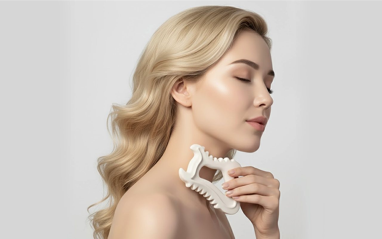 Le gua sha rend mon visage lumineux et sain sans trop d’effort. La céramique est fraîche au début, ce qui est très apaisant.