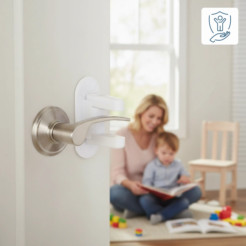 La serrure de sécurité Ortorex s'adapte à la plupart des poignées à levier, se fondant dans tous les décors. Un seul loquet astucieux offre une protection fiable dans toute votre maison.