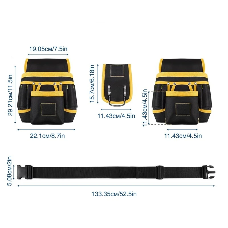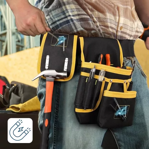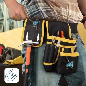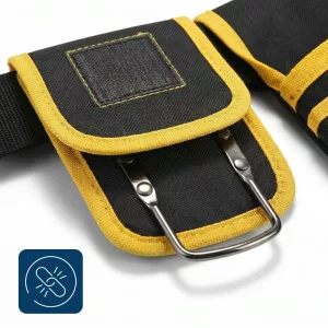 Les coutures renforcées supportent facilement les marteaux lourds, les perceuses et la quincaillerie volumineuse. Le tissu robuste résiste à la poussière de chantier et sert les entrepreneurs, électriciens et plombiers au fil d’innombrables projets.