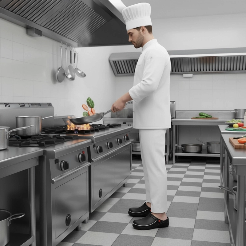 Des pieds fatigués vous ralentissent et nuisent à votre concentration. Les chaussures Ortorex vous permettent de bouger facilement toute la journée. Les éclaboussures et sols mouillés ne sont plus une préoccupation. La confiance grandit lorsque votre pied reste stable. Les journées chargées deviennent plus simples quand le confort dure chaque heure.