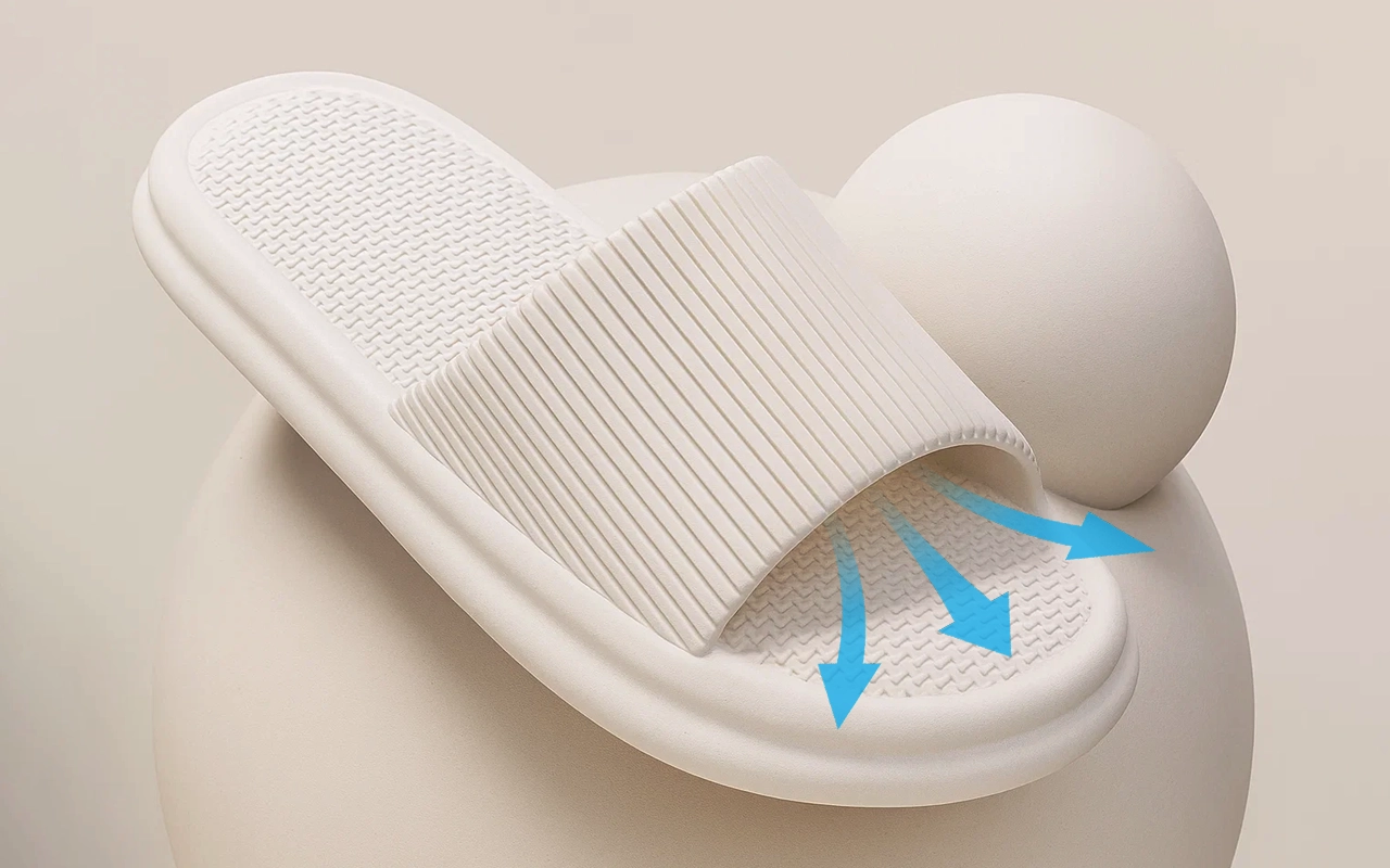 La conception ouverte permet à l'air de circuler librement pour un environnement frais et confortable. Le matériau imperméable garde les pieds secs et sans odeur à chaque usage.