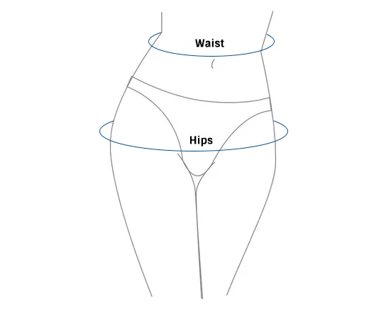 - 2. Enroulez le ruban à mesurer autour de la partie la plus fine de votre taille et de la partie la plus large de vos hanches.