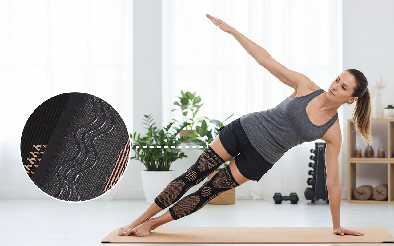Les trois bandes en silicone antidérapantes empêchent l’enroulement ou la descente sur les jambes. Bougez en toute confiance en faisant de l'exercice, au travail ou à la maison.