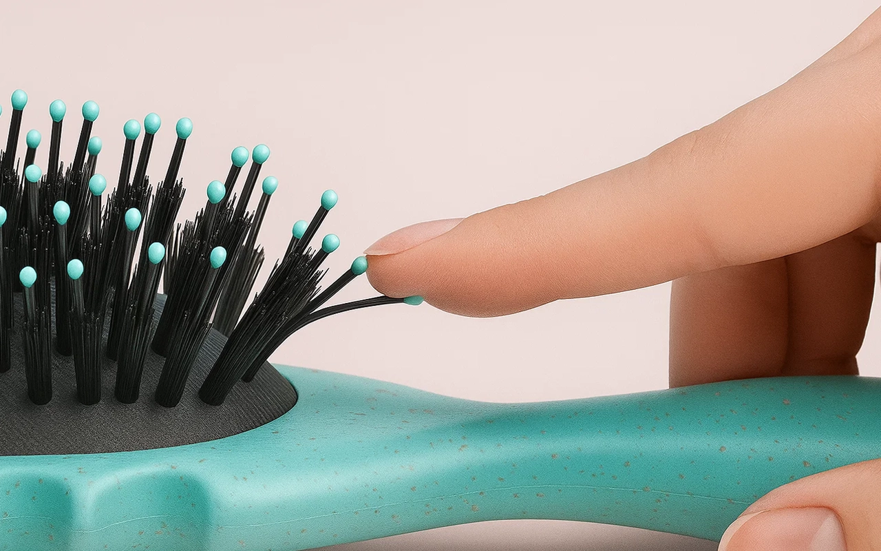 Les poils sont doux et ne font pas mal au cuir chevelu. J’aime comme elle est facile à nettoyer et la poignée tient bien en main.