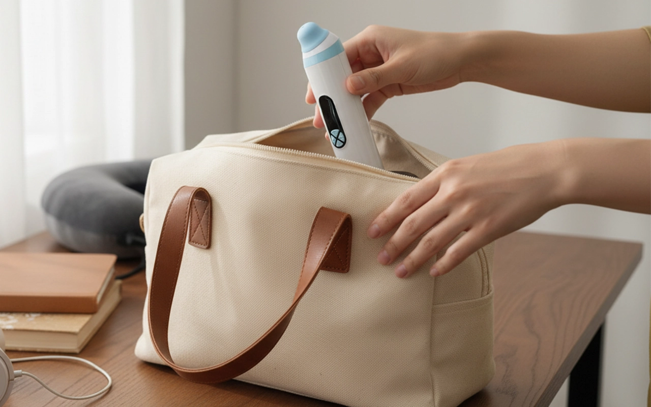 Glissez l'appareil dans votre sac pour voyager facilement au quotidien. Utilisez-le partout où la pression s'accumule ; aucun outil supplémentaire n'est nécessaire.