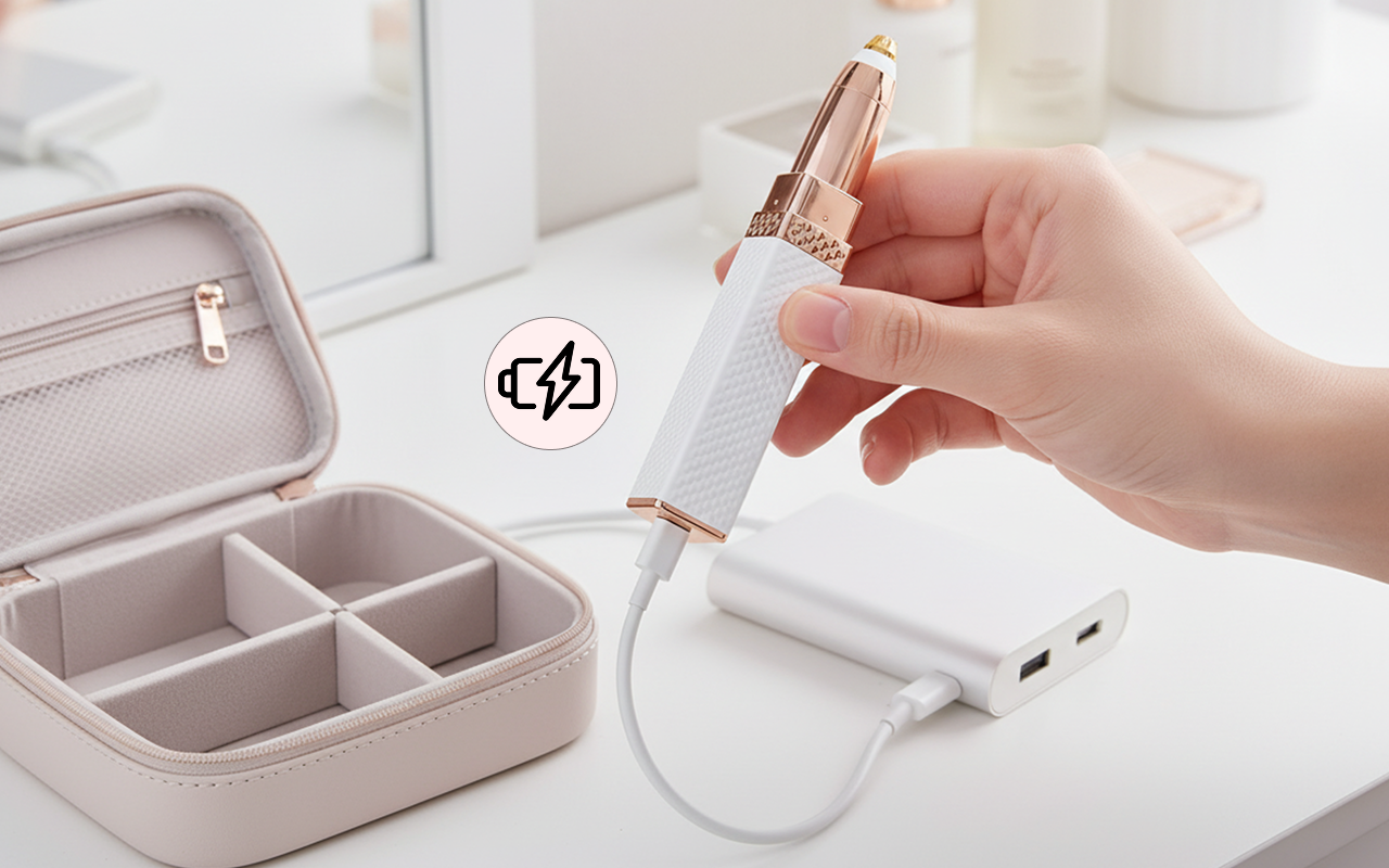 J’adore le fait que ce rasoir ne nécessite jamais de piles. Une charge rapide USB et je peux arranger mes sourcils partout, à tout moment.