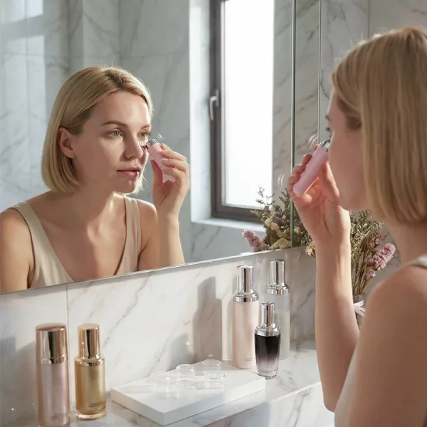 La micro-vibration aide à atténuer rapidement les cernes et les poches. Une utilisation quotidienne révèle un regard plus frais et éveillé.
