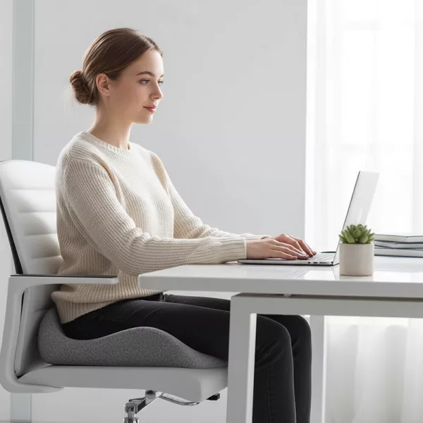 Tellement satisfaite de ce coussin pour le coccyx ! Mes hanches vont bien, et je me tiens plus droit. Il ne glisse pas même si je bouge beaucoup à mon bureau.
