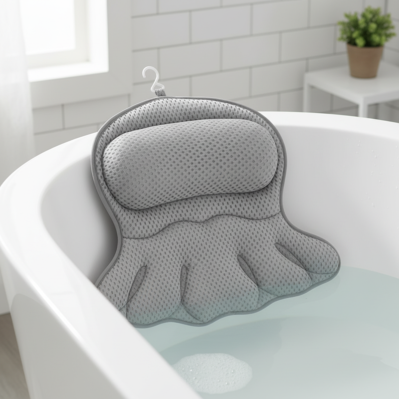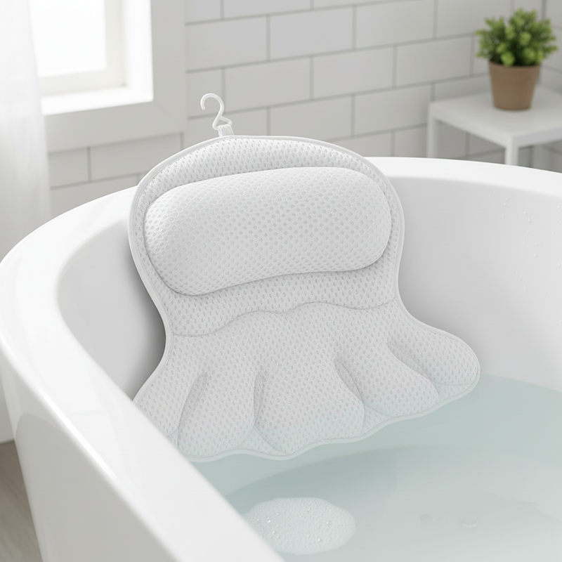 Ce coussin de bain est super doux contre mon cou, et il reste vraiment en place tout le temps. Mes bains du soir sont beaucoup plus confortables !
