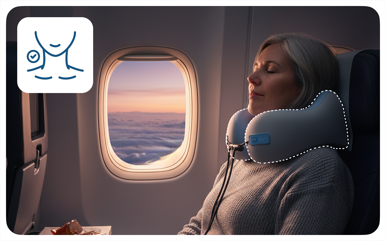 Des contours intelligents épousent votre visage et maintiennent votre cou bien en place. Fini les réveils avec des douleurs après avoir dormi assis.