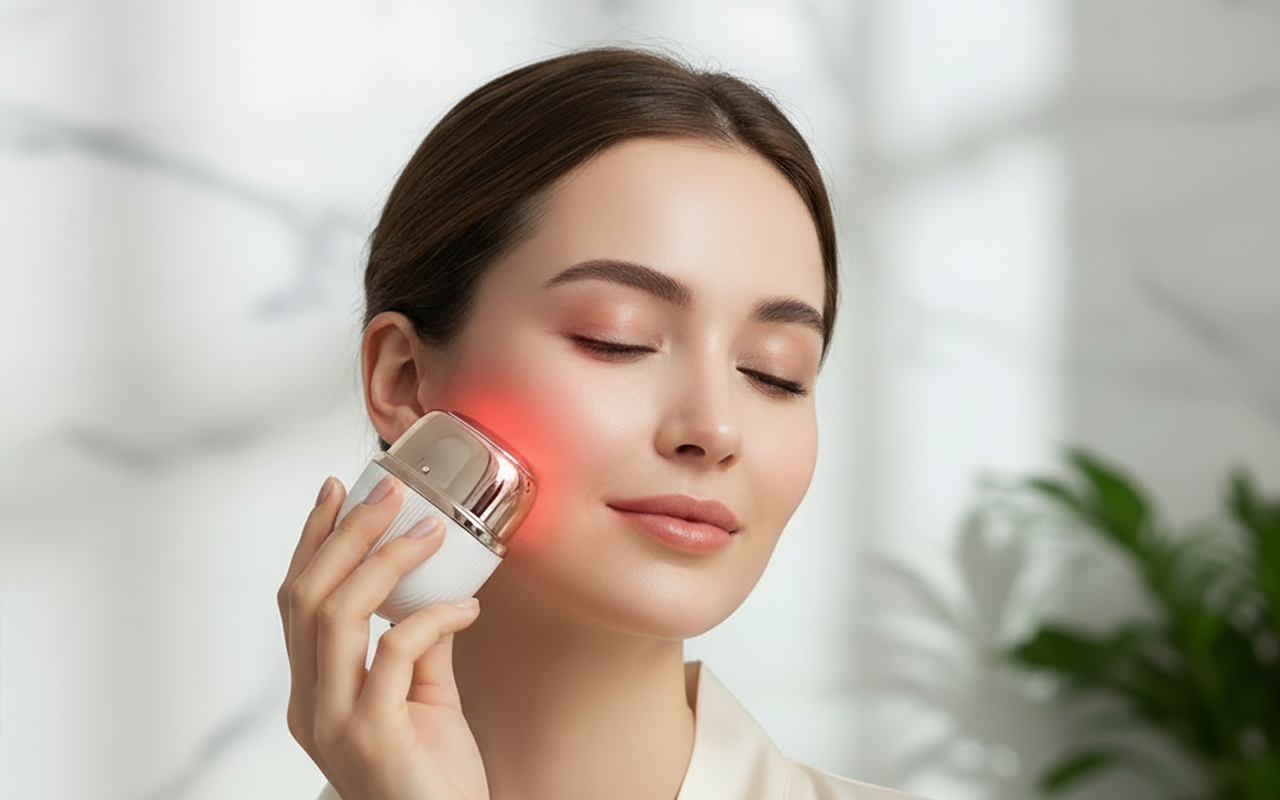 Les lumières LED estompent les teints ternes et augmentent l'éclat. Trois couleurs de lumières apportent une radiance instantanée aux visages fatigués.