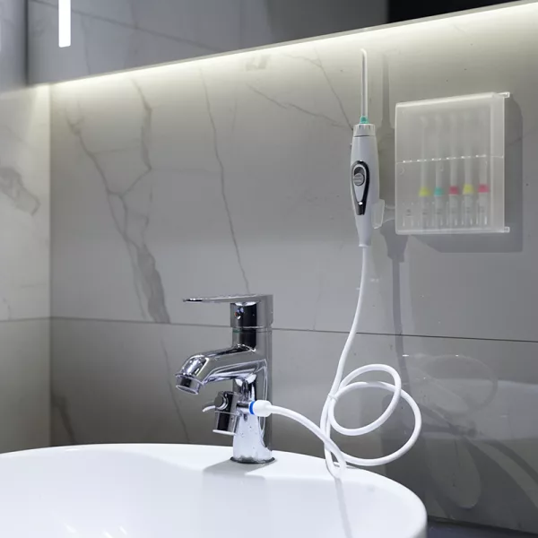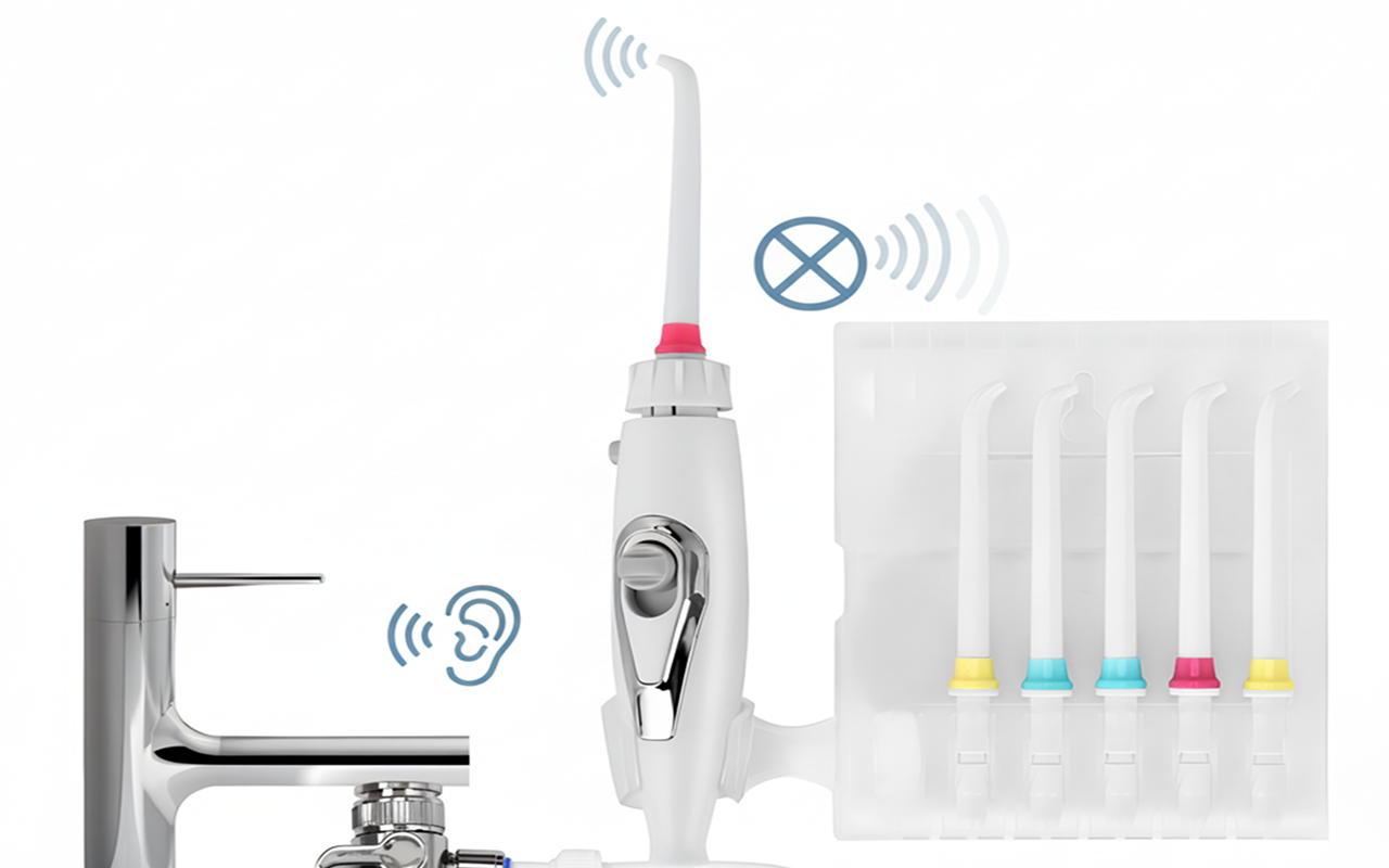 Ce jet dentaire de robinet est génial, surtout pour mes gencives sensibles. Il est doux, mais enlève tout ce qui est coincé entre mes dents. Silencieux et agréable à utiliser.
