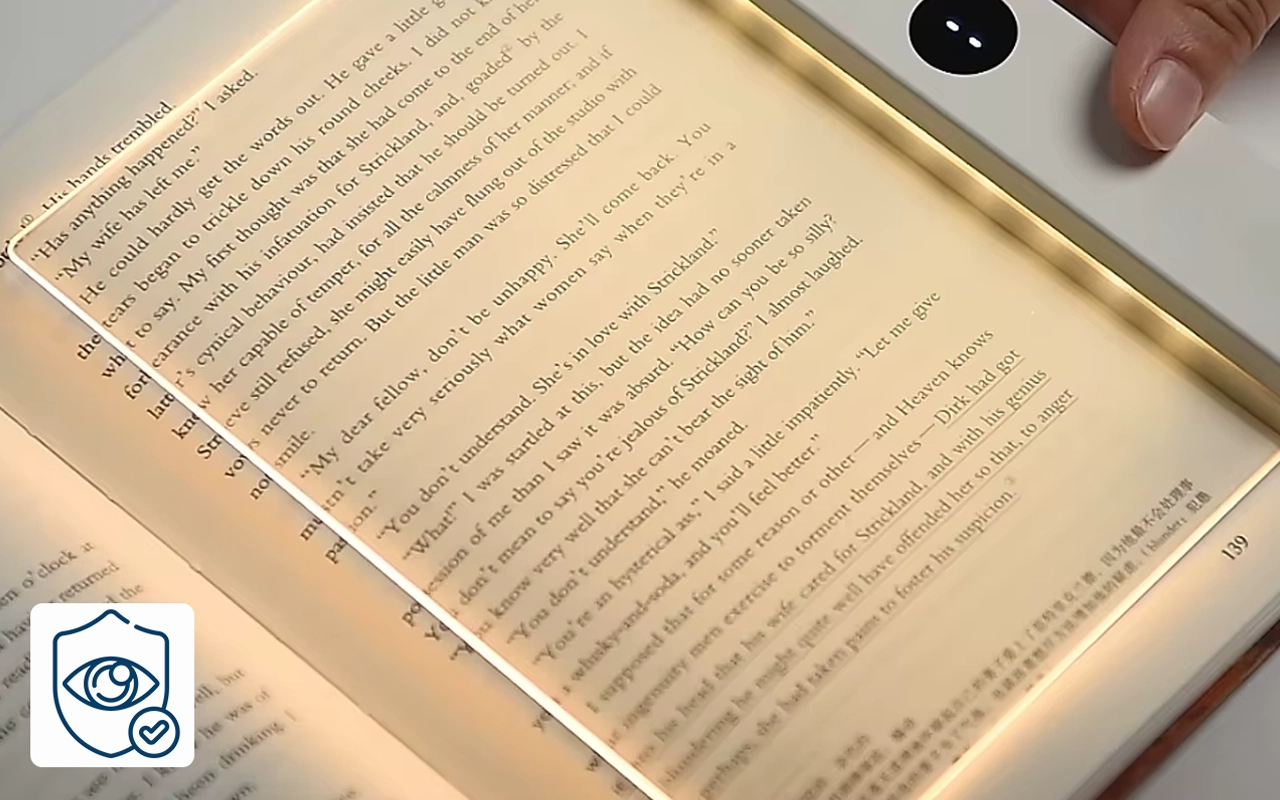 Profitez de longues heures de lecture sans fatigue ni gêne pour les yeux. La lumière douce protège contre l'éblouissement et garde vos yeux détendus.