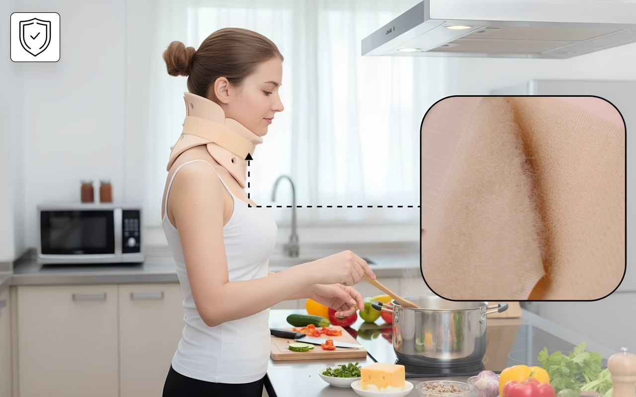 Mon chiropracteur m’a conseillé une minerve souple, alors j’ai essayé celle-ci. Elle est facile à régler, offre un bon maintien, et le matériau respirant reste confortable toute la journée.
