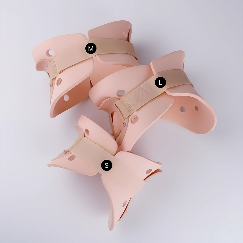 J’étais un peu inquiète à l’idée de porter une minerve, mais celle-ci est très naturelle. Elle est légère, maintient bien mon menton, et parfois j’oublie même que je la porte.