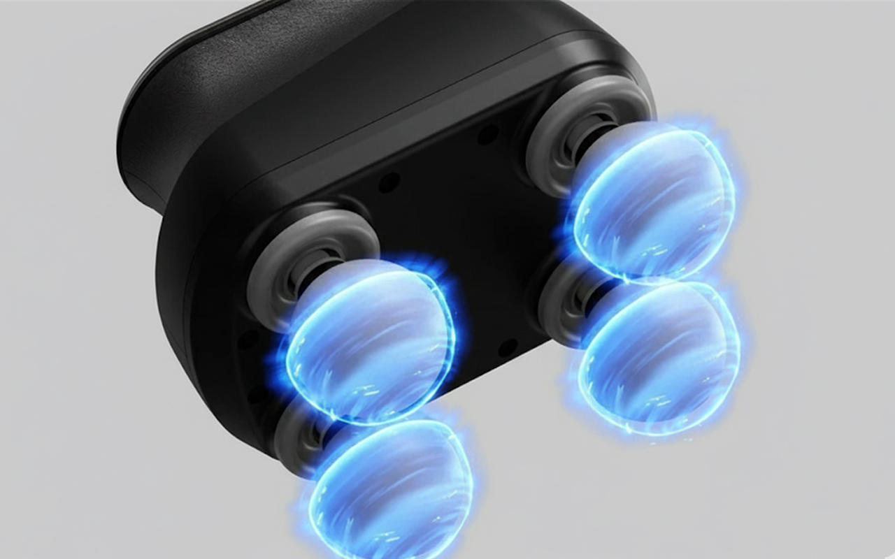 Quatre têtes fonctionnent ensemble pour apporter du confort sur une large zone. Apaisez votre dos, vos épaules ou vos jambes plus rapidement que jamais.