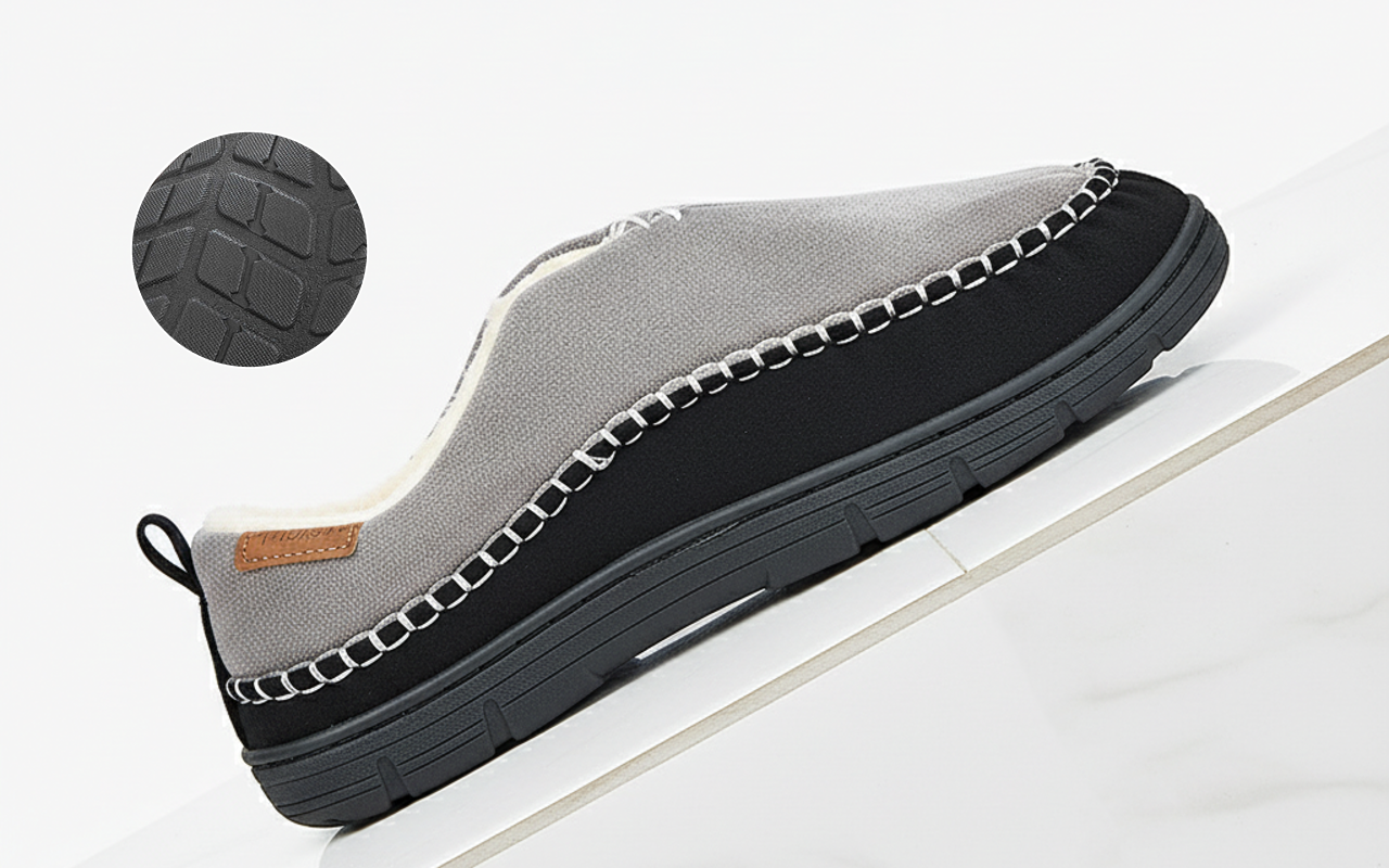La semelle texturée aide à prévenir les glissades sur les surfaces lisses. Marchez en toute confiance sur du carrelage, du bois ou tout espace intérieur.