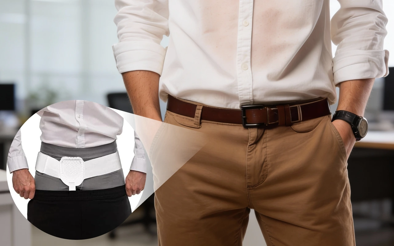 Portez la ceinture herniaire Ortorex toute la journée sans attirer l'attention. La confiance reste élevée car elle s'adapte discrètement sous les vêtements.