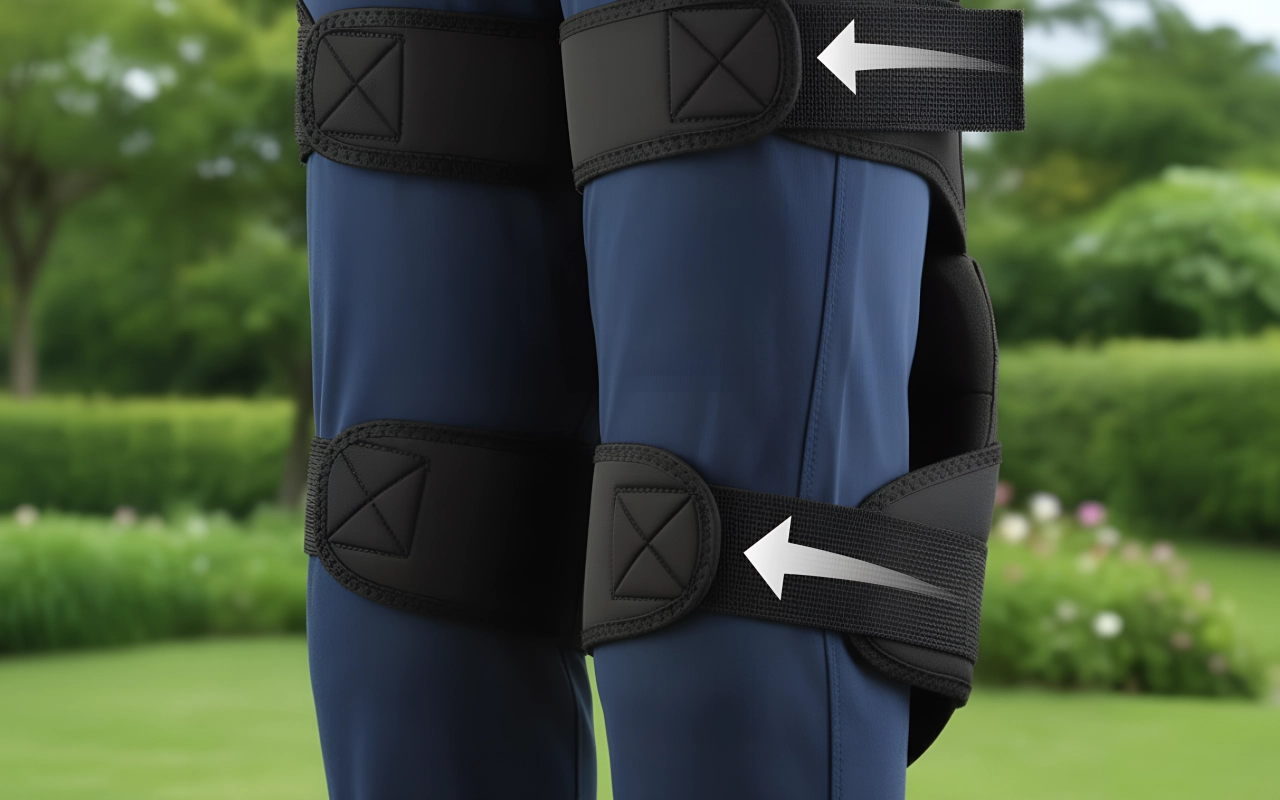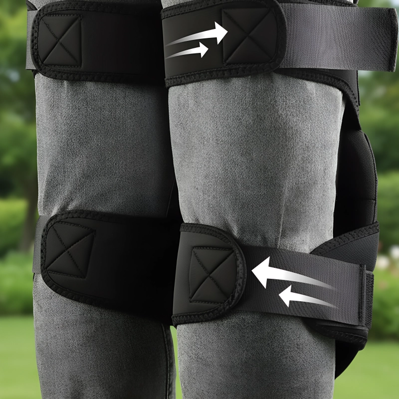 Les sangles faciles s'ajustent en quelques secondes à toutes les tailles de jambe. Les coussinets restent bien en place, vous permettant de bouger rapidement sans glisser.