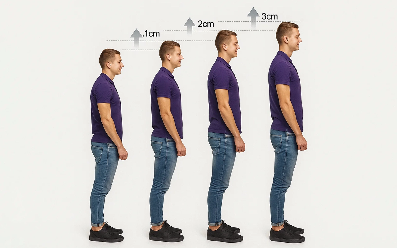 Entrez dans n'importe quelle pièce en vous sentant positif et prêt. Les semelles Ortorex renforcent la confiance en améliorant la posture et la présence. Choisissez parmi trois hauteurs discrètes selon chaque occasion. Profitez d'un confort qui dure toute la journée dans des baskets, chaussures décontractées ou de sport.