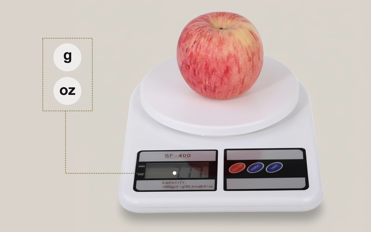 Nos balances de cuisine vous permettent de choisir entre oz et kg.