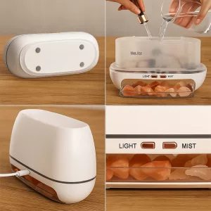 Ma famille remarque une énorme amélioration de l’air sec quand nous utilisons ce diffuseur. Les cristaux de sel apportent une touche sympa et il n’est pas du tout bruyant.