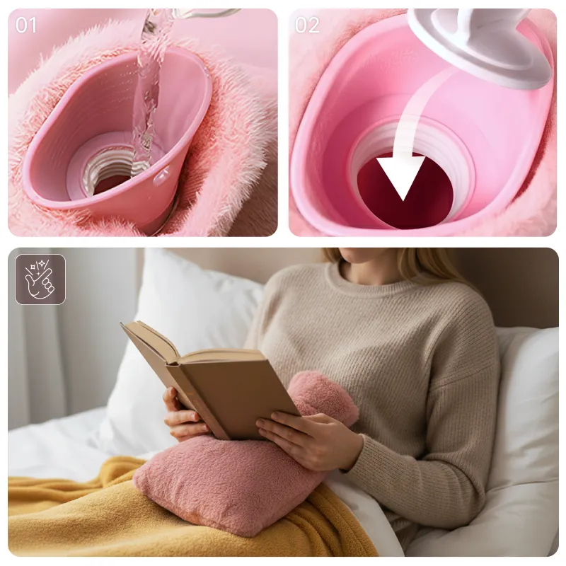 Notre bouillotte a un volume de 2000 ml. Elle couvre une grande partie de votre corps, vous gardant au chaud lors des nuits plus fraîches.