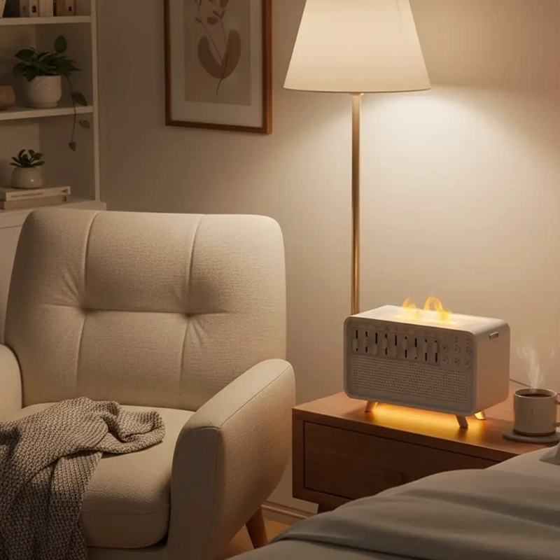 Transformez l'heure du coucher en une escapade paisible chaque soir. L'humidificateur et bruiteur Ortorex apaise rapidement les esprits agités. Profitez de sons apaisants, d'une brume douce et d'une lumière tamisée pour une détente totale. Réveillez-vous frais et prêt à tout affronter.