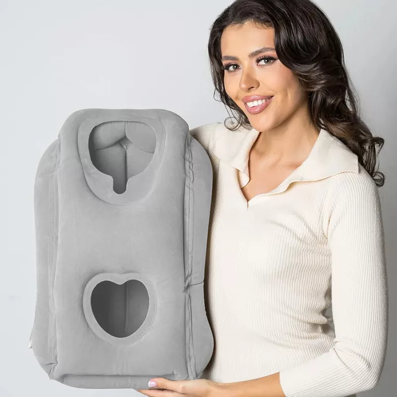 Cet oreiller est super facile à emporter. Je le dégonfle, le plie et le mets dans mon sac. Les longs trajets en voiture avec mes amis sont devenus bien plus agréables.