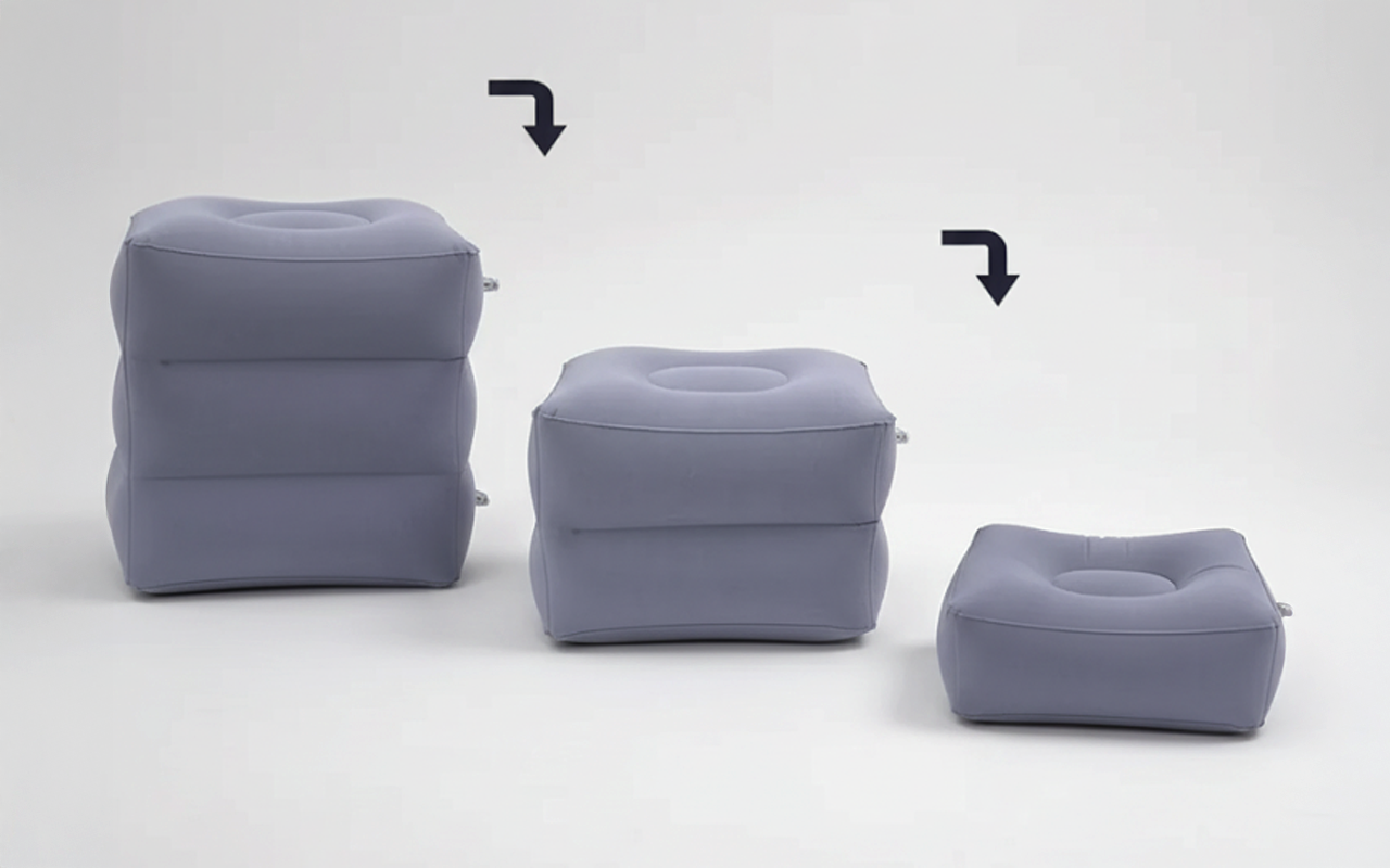 Se plie de façon compacte pour tenir dans n'importe quel sac ou sac à dos. Emportez le repose-pieds gonflable Ortorex partout sans ajouter de poids.